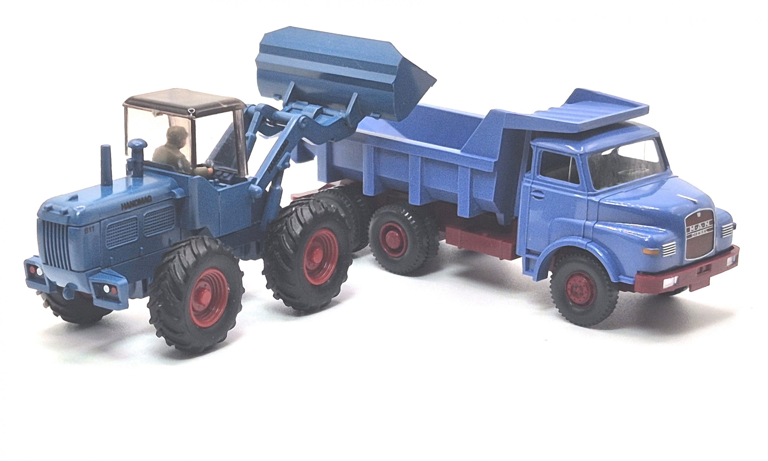 Auch zu diesem Modellgespann gibt es eine → Modellvorstellung. Bei dem Angebot handelt es sich nicht um originale WIKING Modelle im klassischen Sinne, da diese Gespanne so nie das Werk verlassen haben. Die Zusammenstellungen bestehen aber alle aus original WIKING-Teilen, die nun erstmals zusammen angeboten wurden.