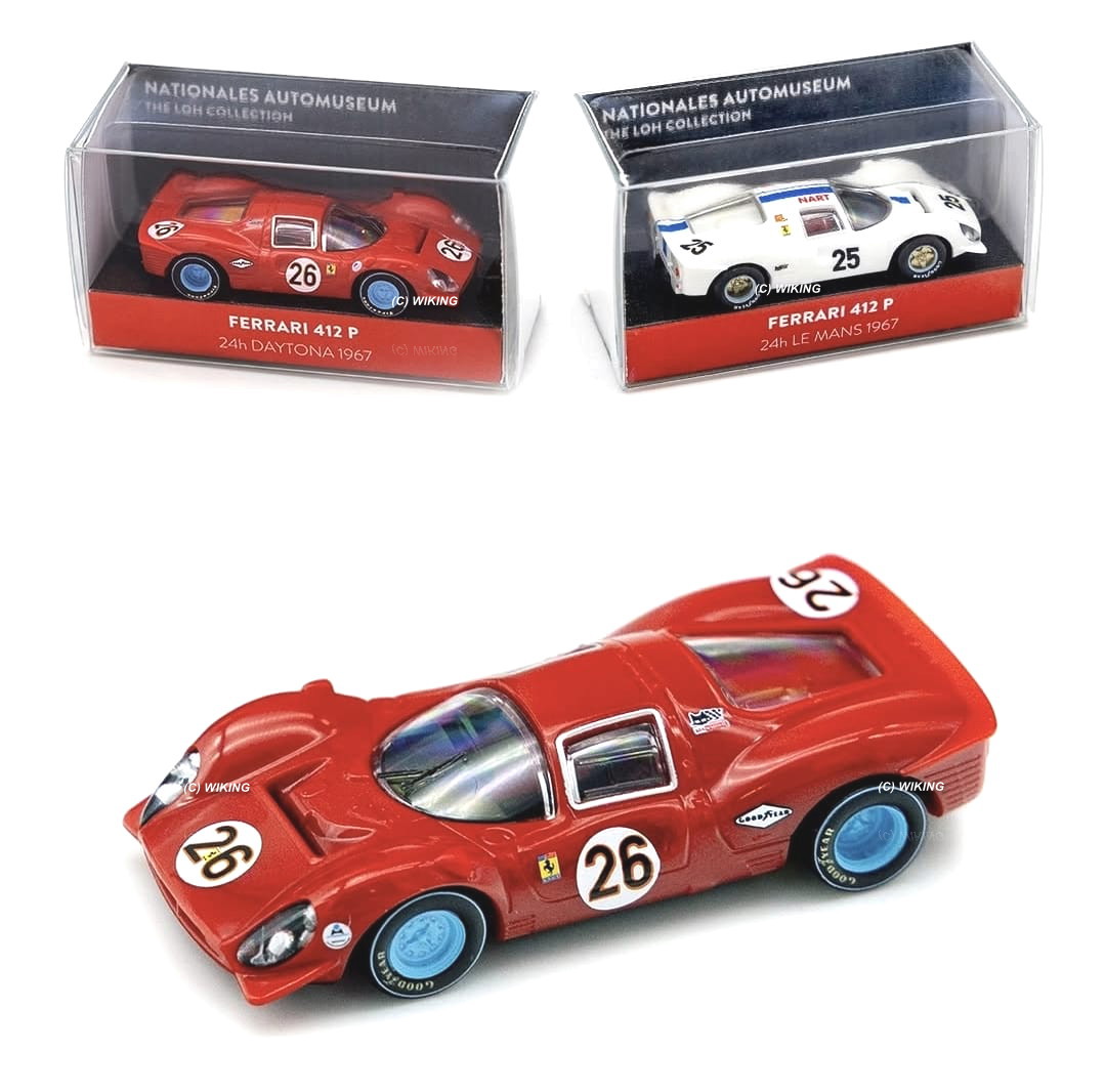 Eines der Premierenmodelle ist der rote Ferrari 412 P, dessen Vorbildfahrzeug auch in der Sammlung zu bewundern ist. Das zweite Modell ist ein weißes Modell, dessen Vorbildfahrzeug an dem 24h-Rennen in Le Mans fuhr.