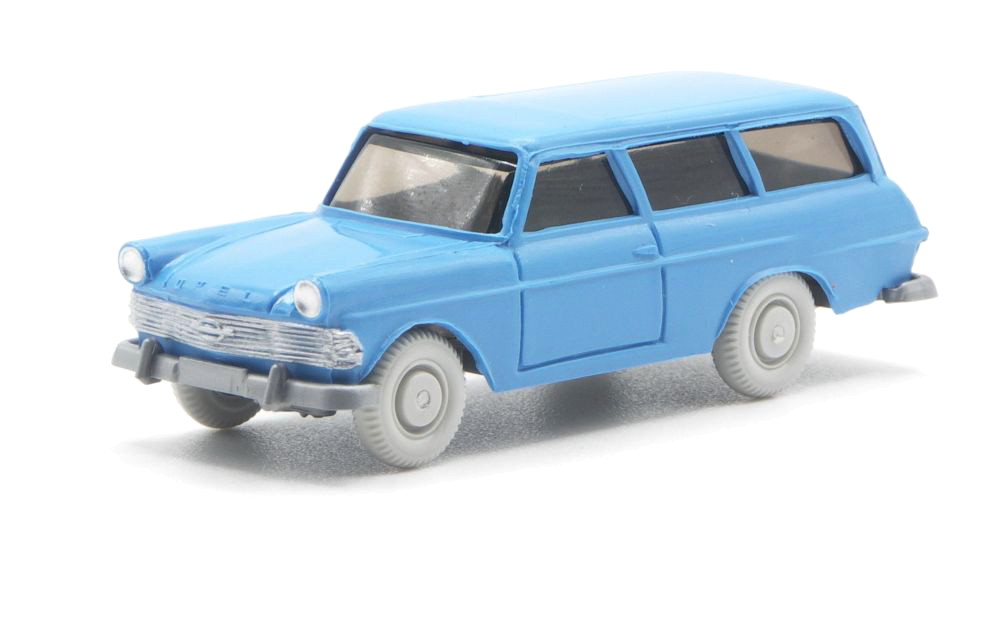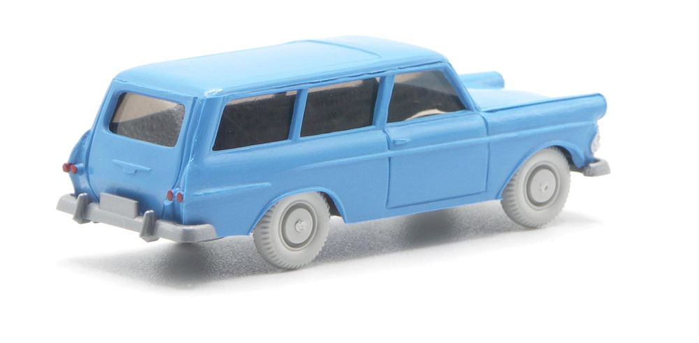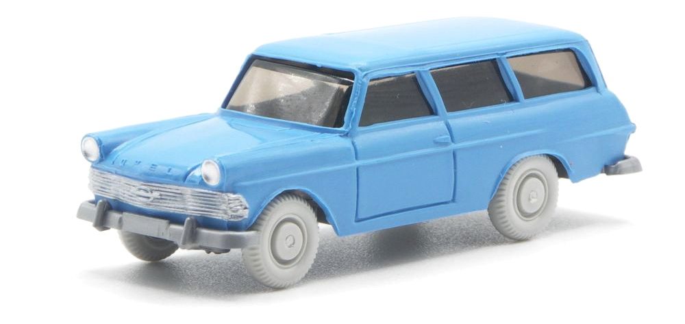 Himmelblaues Wiedersehen mit dem Opel Rekord P2 Caravan aus dem Jahr 1960. Der Kombiwagen ist seit 1963 bei WIKING im Formenbestand, wurde bis 1966 im Programm geführt. 2006 gab es die erste Neuauflage als Sondermodell für Veltins 2018 wurde er erneut ins Serienprogramm aufgenommen. Nach einer roten zivilen Version folgten noch ein Einsatz beim Fernmeldedienst der DBP 2019 und bei der DB Deutsche Bundesbahn 2020.