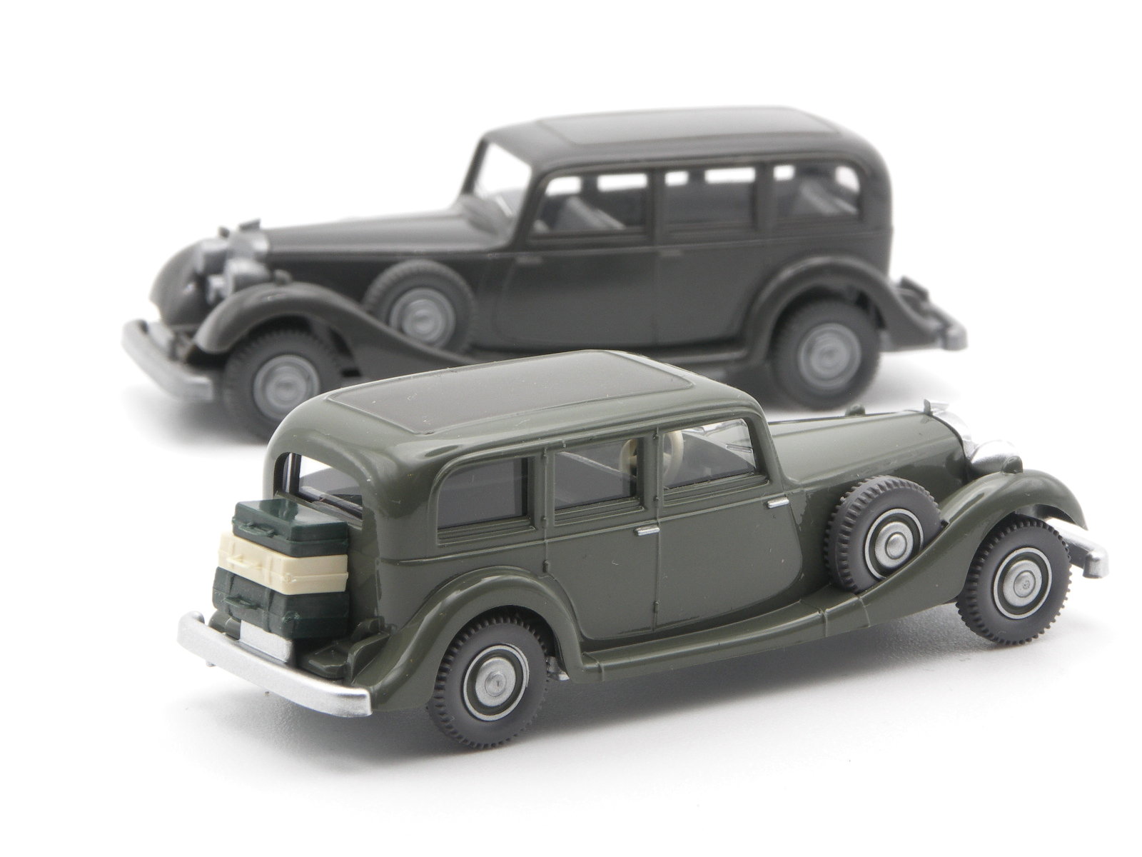 Auch in der 1973 von Peltzer ins Leben gerufene Klassiker-Reihe war der Horch 850 wieder das dritte PKW-Modell – jetzt deutlich detaillierter, verglast und mit Einrichtung. Die dritte Neuauflage des Horch als gewolltes Modelldenkmal im Maßstab H0, welches nun nach über 50 Jahren noch einmal eine Wiederauflage mit Aufwertung erfährt. Denn das graugrüne Modell nun erstmals ein Klarlack-Finishing, was die Oberfläche noch edler wirken lässt. Die gesilberten Türgriffe und die aluminium-silbern lackierten Grill und Fahrgestellbauteile heben sich auf der dunkelgrünen Karosserie vornehm ab.