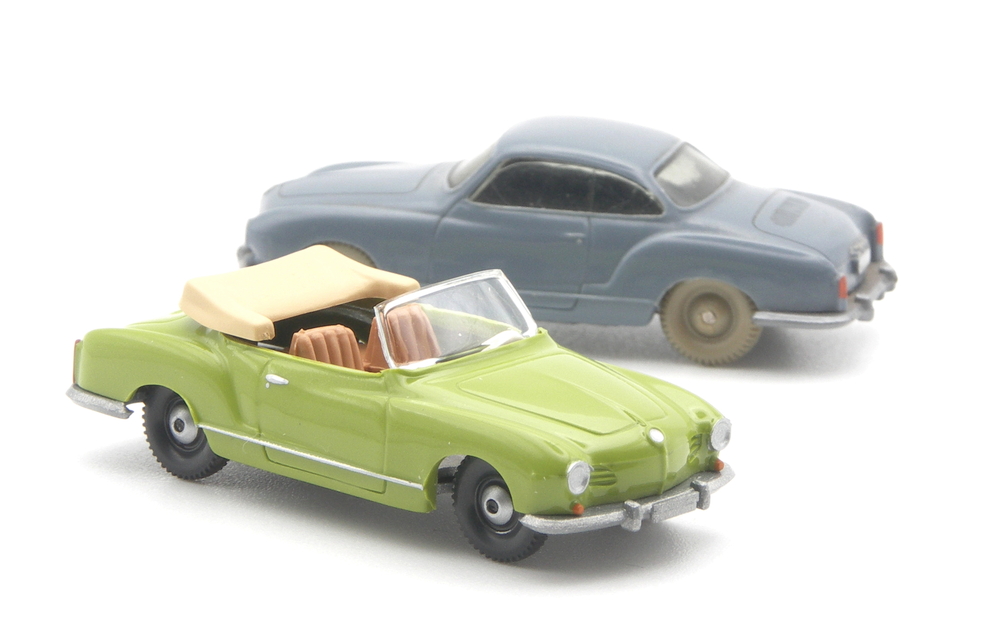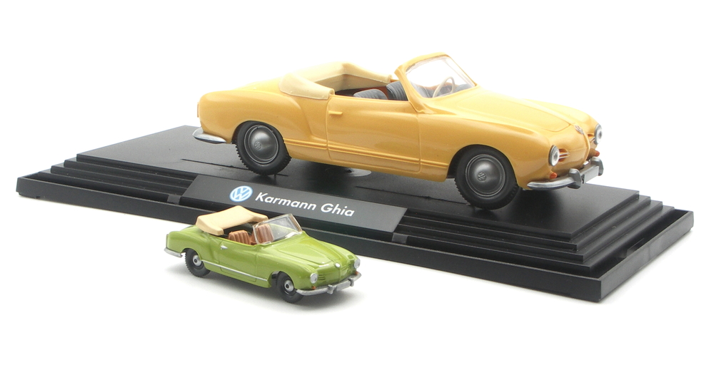 Schnipp schnapp Dach ab. Cabrio fertig? So einfach ist es nicht. Was beim DKW Coupé noch passte, wollte beim VW Karmann Ghia nicht so einfach gelingen. Die erste Studie zeigte, mit bestehenden Formteilen lässt sich die Cabrio-Version nicht umsetzen. Die für die Karosseriebreite passende Scheibe des Porsche 911 ist viel zu hoch und klobig. Das Coupé, zwischen 1960 und 1972 erstmals bei WIKING im Programm, konnte nie so einfach aufgeschnitten werden, wie das große Schwestermodell.