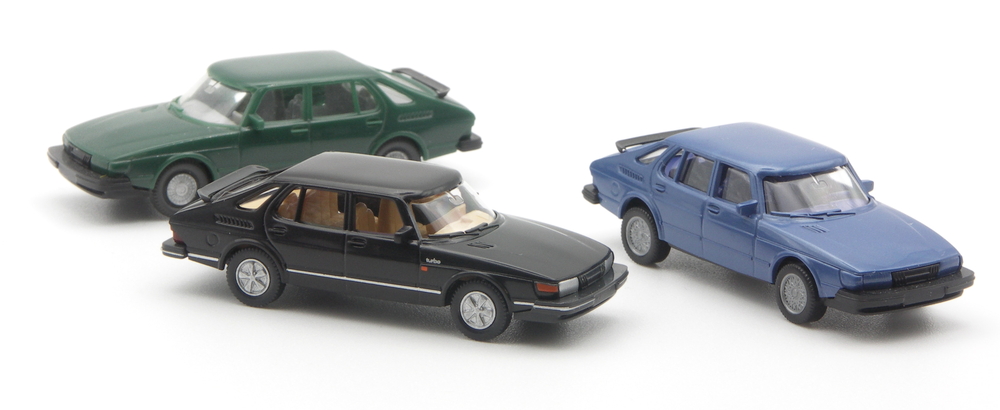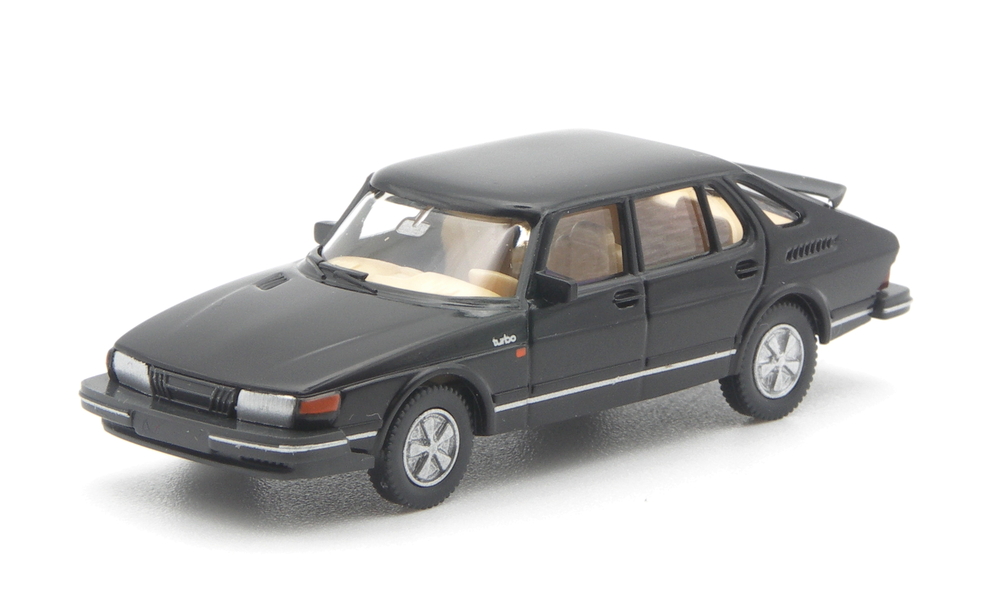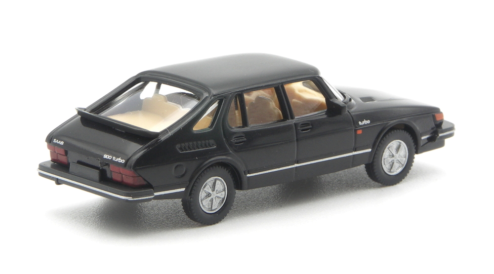 Orange bedruckte Blinker vorne und seitlich, dazu ein silberner„Saab 900 turbo“- Schriftzug auf der Heckklappe. Den Hinweis auf den turbo-unterstützen Antrieb bekommt der Betrachter auch am vorderen Kotflügel, dort ist der Schriftzug silbern zusätzlich aufgedruckt. Den sportlich eleganten Auftritt unterstreichen die silbernen Fuchsfelgen. Ein ganz anders wirkendes Modell. Ein schöner alter Schwede.