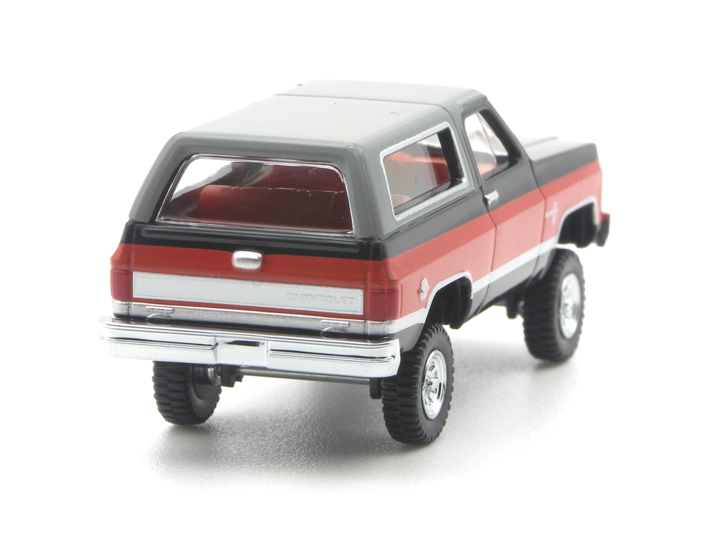 Dazu kommen, wie schon vorher verwendet, silberne Schriftzüge an den Seiten und am Heck. Silberne Türgriffe, Tankdeckel und Klappengriffe kommen hinzu. Seitlich hat der Blazer eine neues Typenkennzeichen aufgedruckt bekommen. Das Chevrolet-Logo ist vorne und hinten golden bedruckt. Die Rückleuchten sind rot, die seitlichen Blinker vorne am Kotflügel sind orange bedruckt.