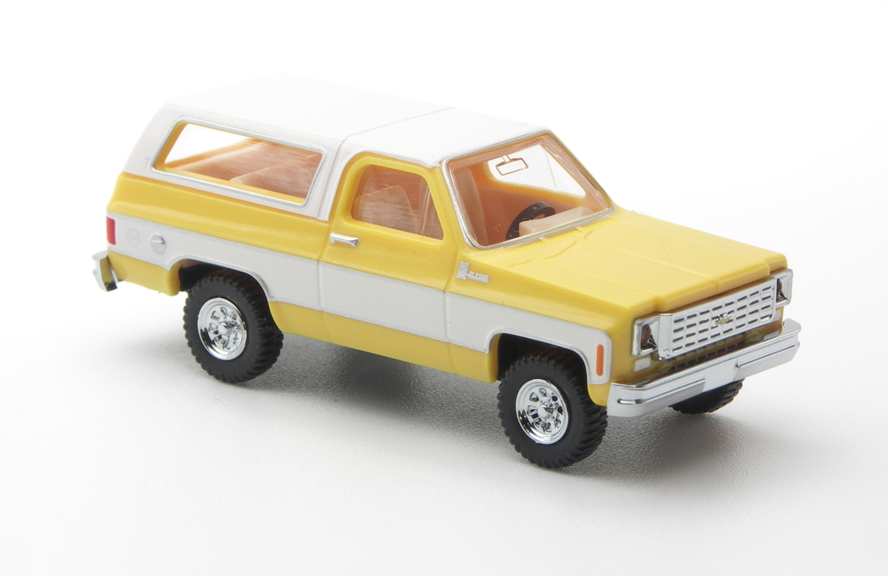 Im letzten Frühjahr rollten die ersten beiden Versionen des Chevrolet Blazer K5 zu den Fachhändlern. Nun legt WIKING beide Fahrgestellversionen nach. Sehr nah am Vorgängermodell kommt der Chevi mit Straßenfahrgestell daher. Statt Orange gibt es jetzt ein zeitgenössisches Zinkgelb, welches mit weißen Bauteilen und viel Chrom kombiniert wird. Also ein klassischer 1970er-Jahre Aufritt.
