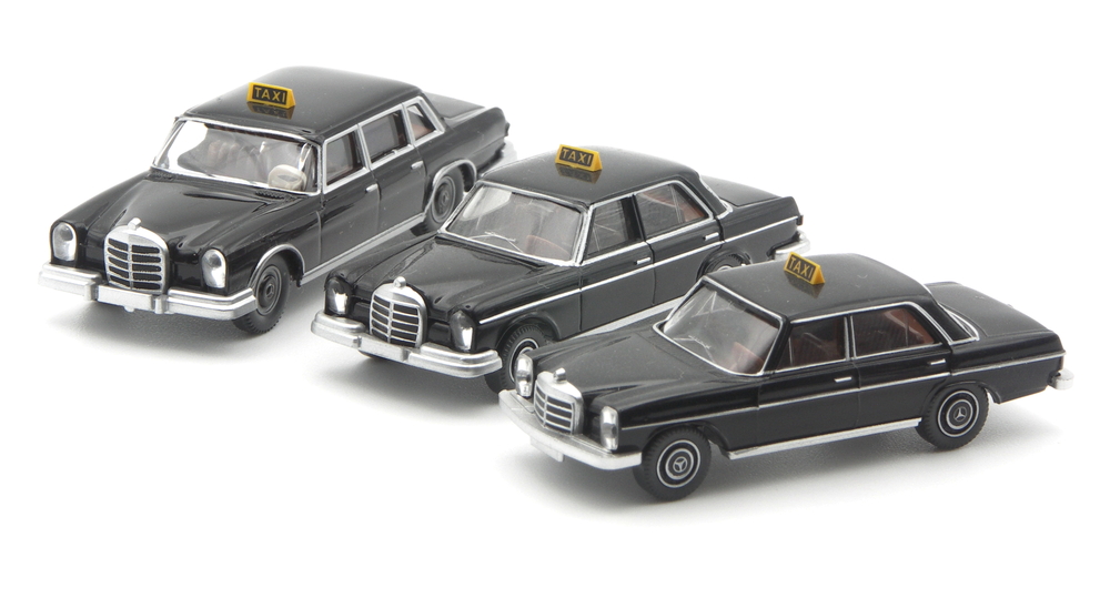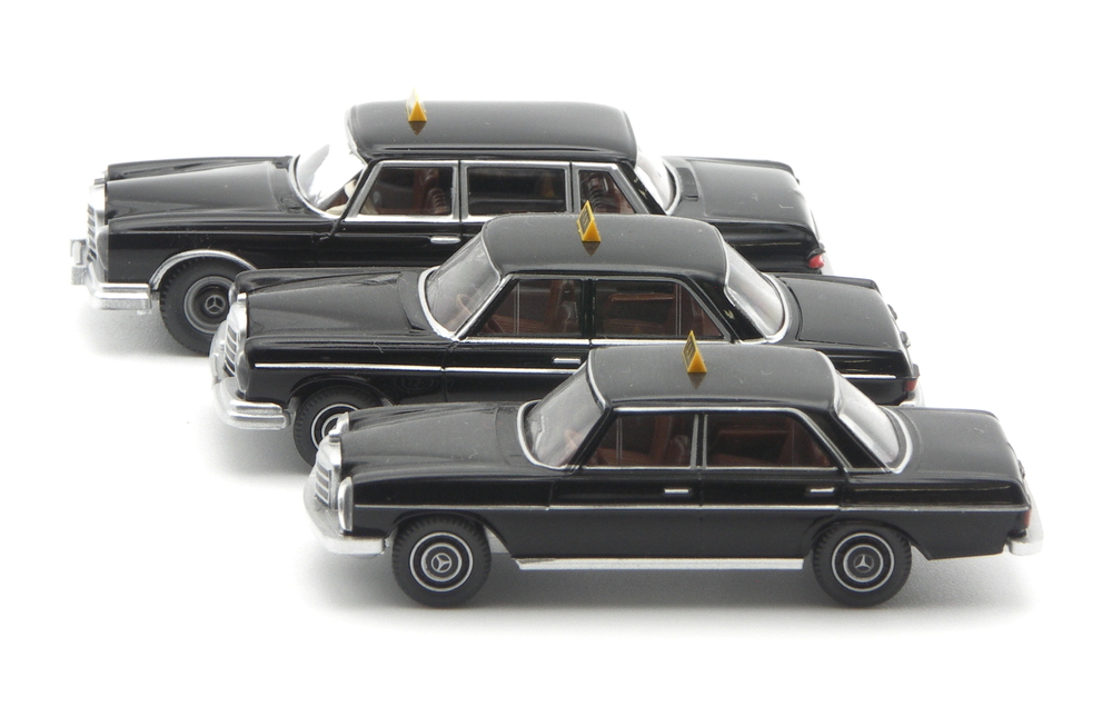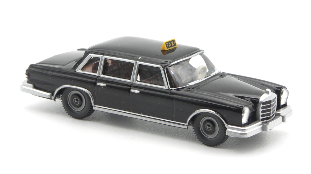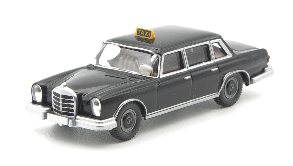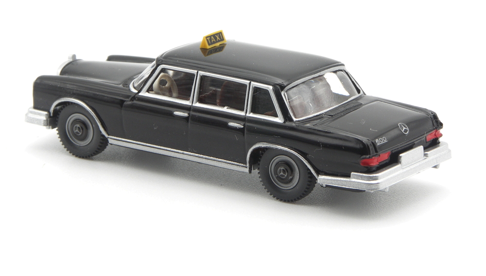 Ein 600er Mercedes-Benz als Taxi-Limousine? Ja, damit bereichert WIKING den zeitgenössischen Taxi Stand. Mit dem wohl edelsten Taxi-Modell der WIKING-Historie. Möglich machen das Abbildungen eines Vorbildfahrzeugs, welche die Modellentwickler in Lüdenscheid zum Auftrag nahmen, das Edel-Taxi umzusetzen. Der große Mercedes-Benz fuhr einst im München – ein Schickeria-Taxi, wie es der Pressetext beschreibt. Es werden wohl hochrangige Gäste gewesen sein, die von den Nobelhotels zu Flughafen und Messe reisten?