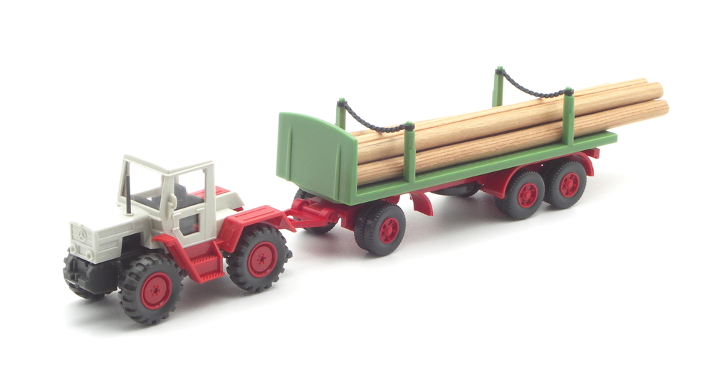 Doch auch wenn man damit keine anderen Sondermodelle vervollständigen kann, so finden sich in der Sammlung natürlich reichlich passende Zugfahrzeuge. Der Anhänger trifft so auf MB trac, Unimogs oder auch LKW. Nicht immer waren Fuhrparks farblich einheitlich.