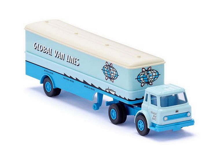Die Zugmaschine wurde an das amerikanische Vorbild angepasst, in dem die hinteren Kotflügel weggelassen wurden, und hellblaue Trilex-Felgen zum Einsatz kommen. Auflieger und Zugmaschine erhalten den inzwischen üblichen Bemalungs- und Bedruckungsumfang. Beide bekommen die „Global Van Lines“-Schriftzüge. Die Rückleuchten sind rot bemalt, die Scheinwerfer am IH sind gesilbert.