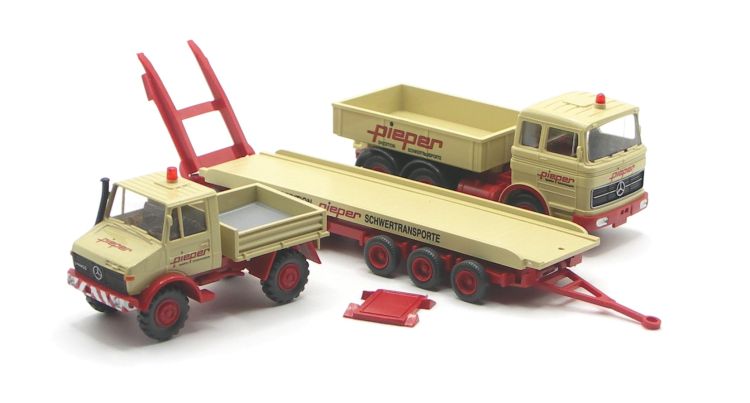 Es war zu erwarten, dass zeitnah zu Unimog U 1300 und MB Schwerlastzugmaschine auch passendes Anhängermaterial für die Fahrzeuge der Spedition Pieper erscheinen würde. Mit dem Culemeyer Straßenroller ist es nun soweit, die Solozeiten für die beiden Zugmaschinen sind vorbei. Der Culemeyer wird inklusive einer Platte geliefert, so dass verschiedene Einsatzsituationen nachgestellt werden können.