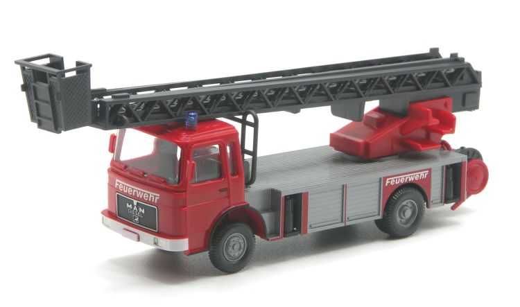 Ein in Deutschland selteneres, aber sehr schönes Vorbild für eine Feuerwehr-Drehleiter hat WIKING – man muss sagen endlich – auf die Räder gestellt, aber auch stellen können. Die Dominanz der Mercedes-Benz und Magirus-Deutz Fahrzeuge bei WIKING ist gebrochen. Mit dem separaten Kabinenunterteil für die MAN F8 Fahrerhäuser sind nun auch Einsatzfahrzeuge mit diesen Kabinen möglich.
