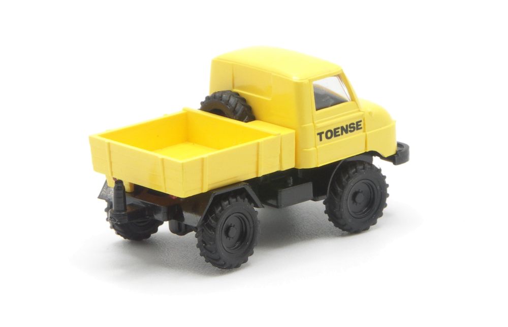 Für den wachsenden Toense-Fuhrpark liefert WIKING einen Unimog zu. Als Hofhund, oder Kurzstrecken-Zugfahrzeug kann der zinkgelbe Allzweckler eingesetzt werden. Was dem Fuhrpark jetzt noch fehlt, sind Anhänger. Schwerlast-, Plattform- oder auch Pritschenanhänger für Material. Dann kommt der Fuhrpark in Fahrt. Also, der Spannungsbogen steigt.