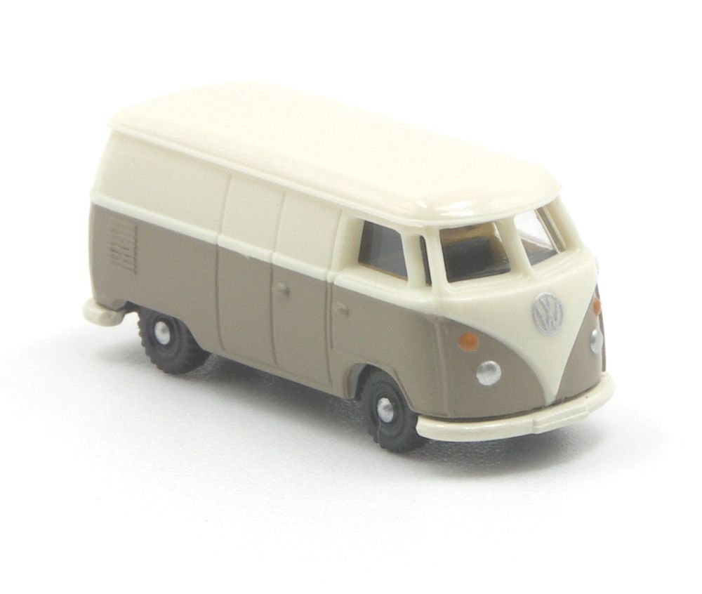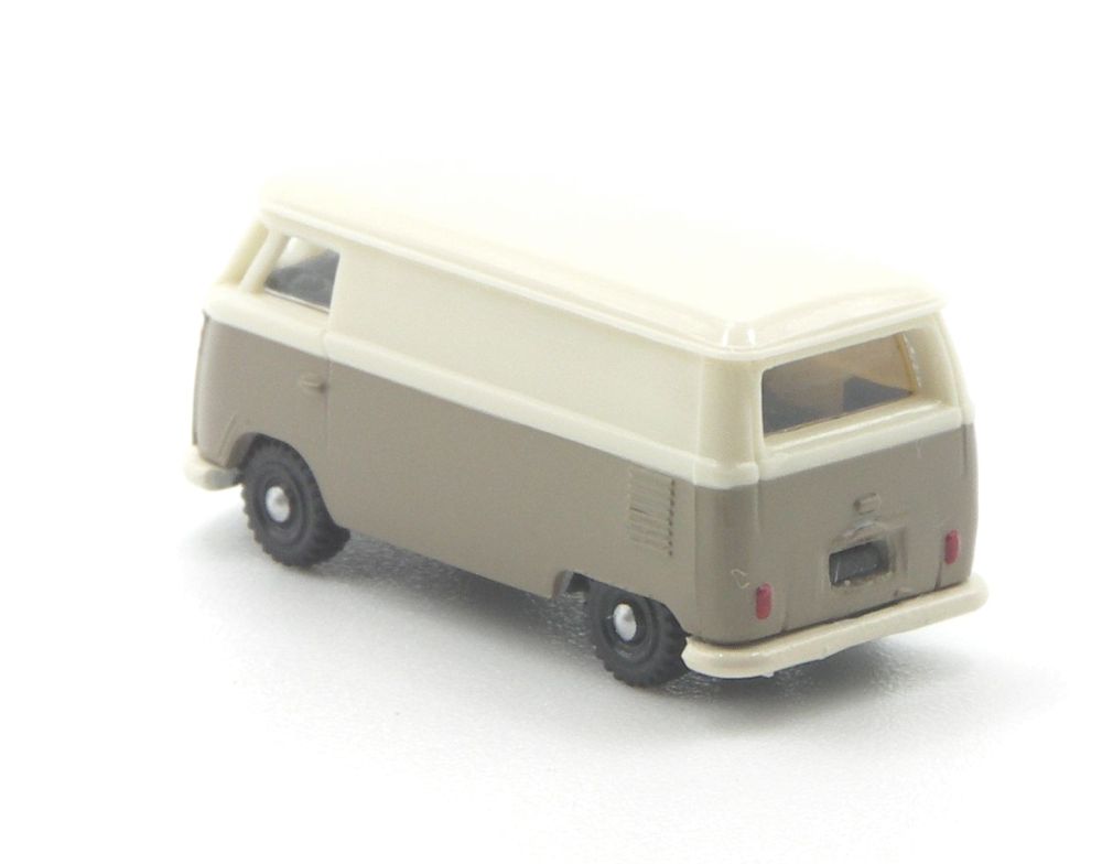 Das Modell rollt auf einteiligen Rädern, deren Kappen silbern bemalt sind. Der Kastenwagen wird durch Bemalung der Scheinwerfer, der Rückleuchten und Blinker vorne aufgewertet. Das kleine VW-Logo an der Stirnseite ist silbern bedruckt.