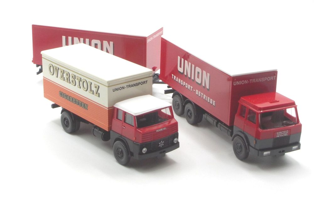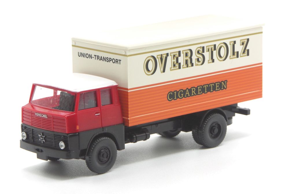 Wir fahren für …, so steht es immer wieder auf den Planen oder Koffern von LKW zu lesen. Bei Union Transport ging man da in den 1960er-Jahren anscheinend plakativer vor. Die Werbung auf dem Koffer des Henschel HS 14/16 mit Fernfahrerkabine in Firmenfarben des Partners sprach für sich. Hier wurde klar, Overstolz Zigaretten sind an Bord. So fuhr die Spedition auch für Adox Filme und Kameras oder Reemtsma, wie eine Internetrecherche zeigt.