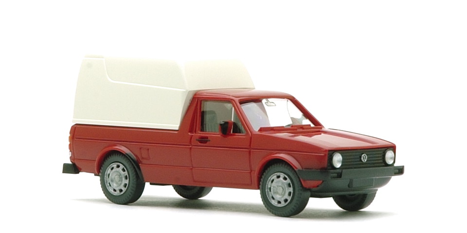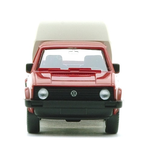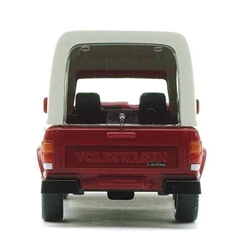 Wie das Vorbild, welches in diesem Jahr auf einer Messe in Japan der Öffentlichkeit in Anwesenheit des italienischen Golf-1-Designers Giorgetto Giugiaro vorgestellt wurde, trägt der Caddy von WIKING vorbildgertreue Stahlfelgen und ein cremeweißes Hardtop auf der Ladefläche.
