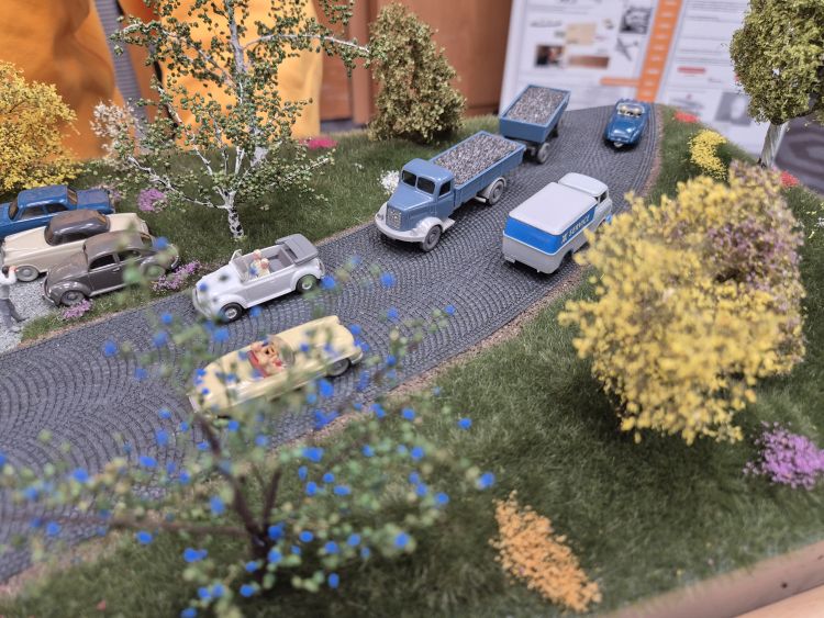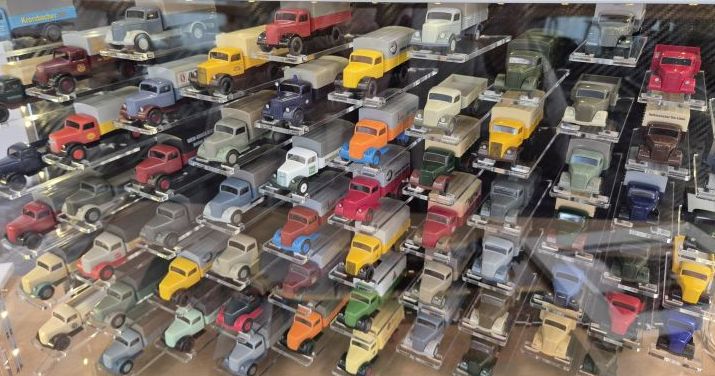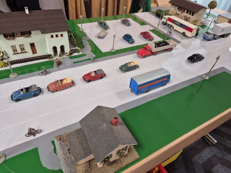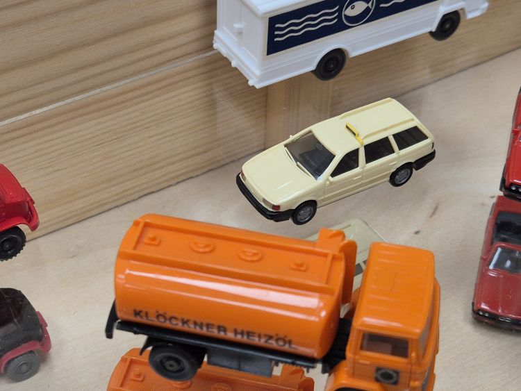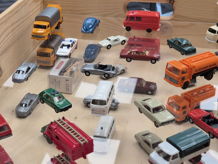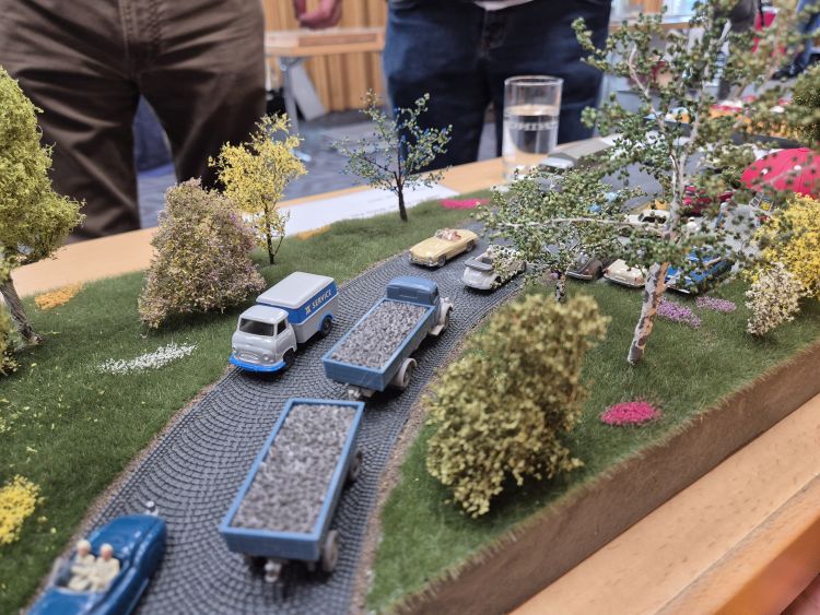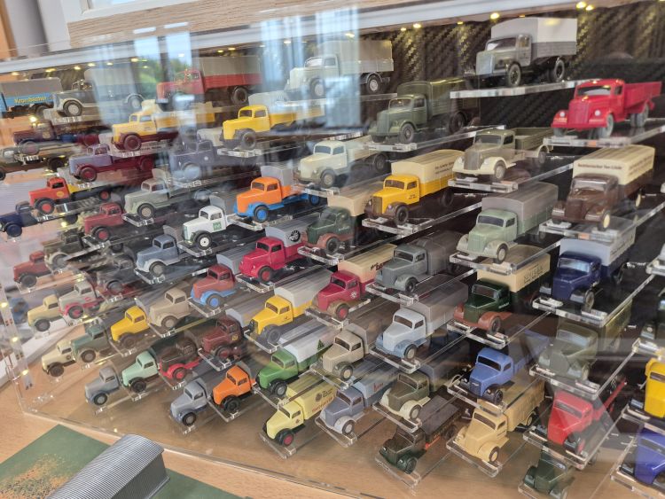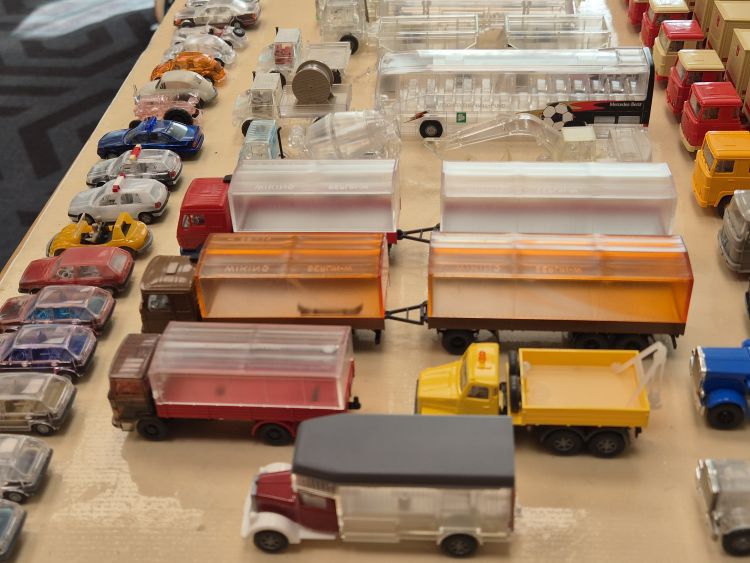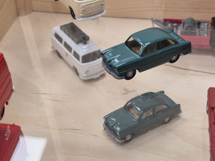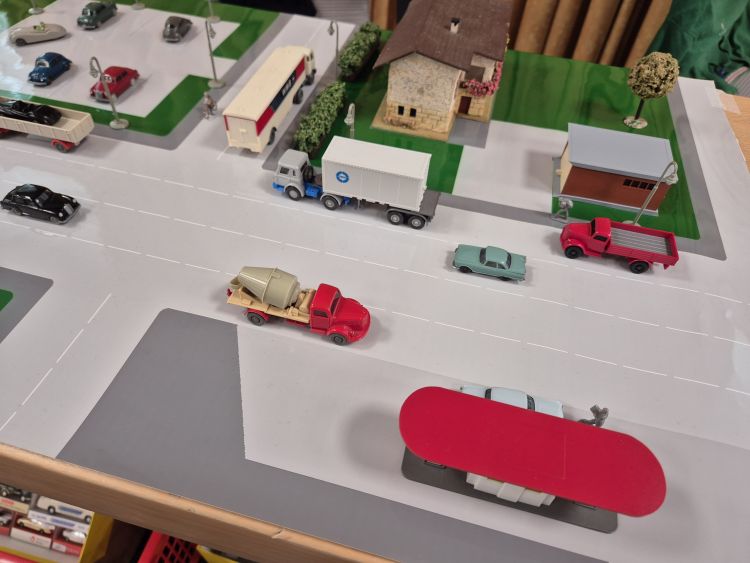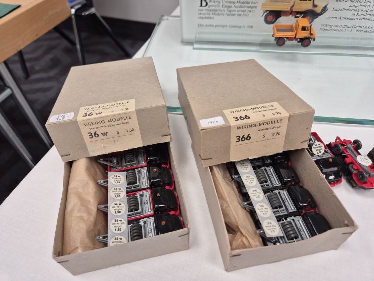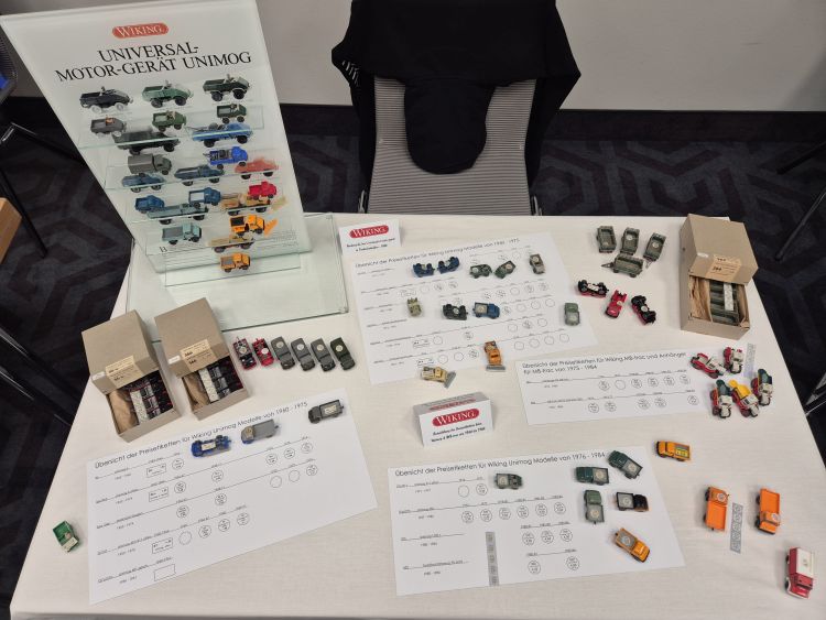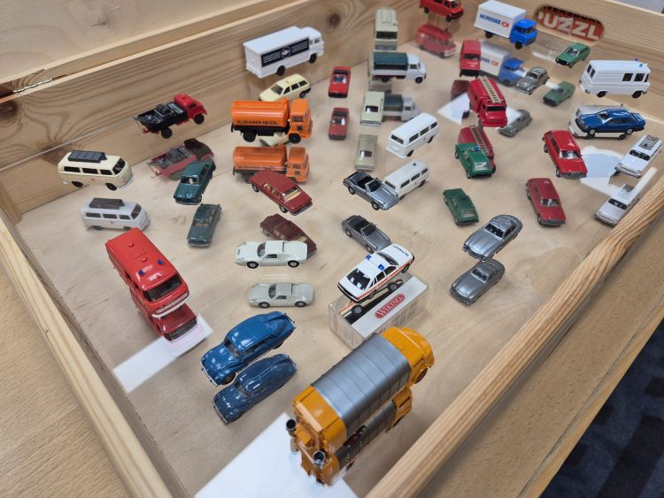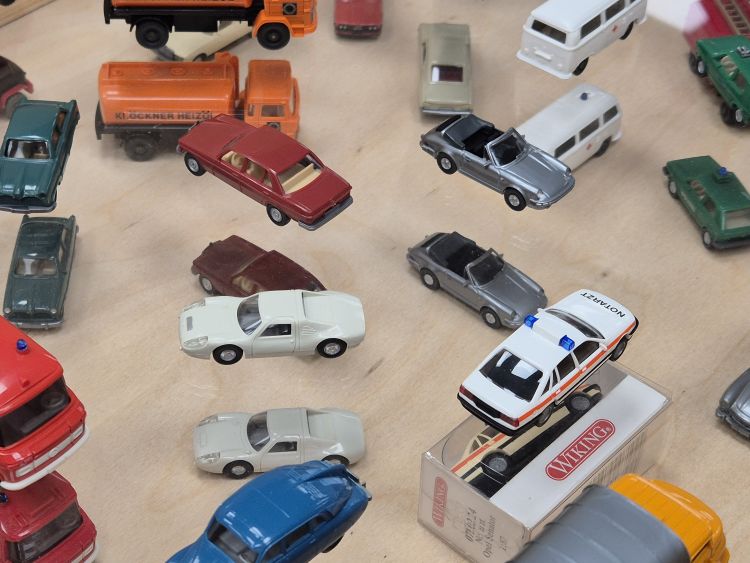 Im Raum sausten auf Tastendruck umgebaute WIKING-Autos über einem Straßenschleife. Die 31 Teilnehmenden verwandelten den Ausstellungsraum mit ihren Modellpräsentationen auf ganz unterschiedliche Art und Weise in eine kleine Museumslandschaft. Zu sehen gab es wieder Modelle aus allen Sammelthemen: Flugzeuge, Schiffe, Draht- und Rollachser, verglastes und unverglastes Material, Umbauten, Fotografiermodelle, Vorserien, Werbe- und einfach nur schöne Serienmodelle. Die ganze WIKING-Vielfalt in einem Raum.