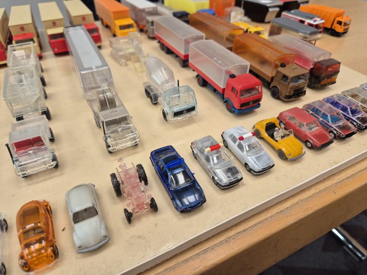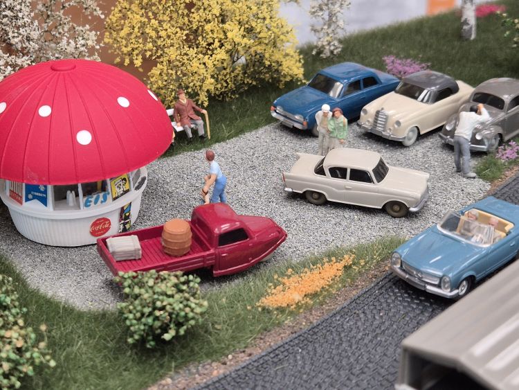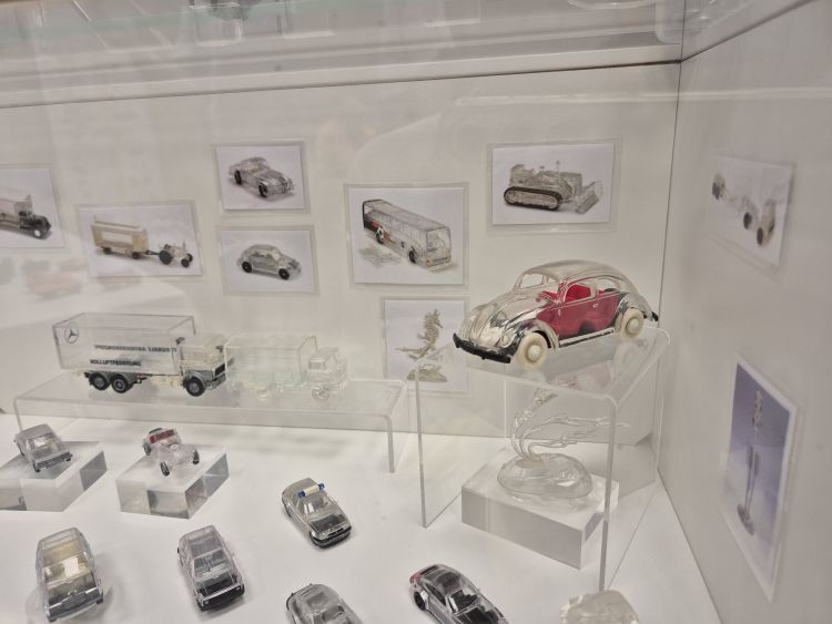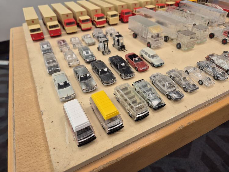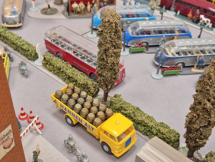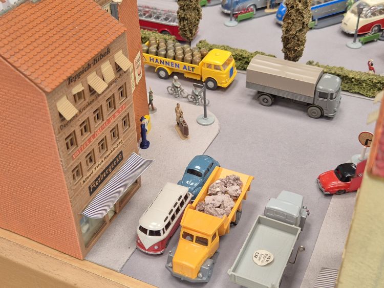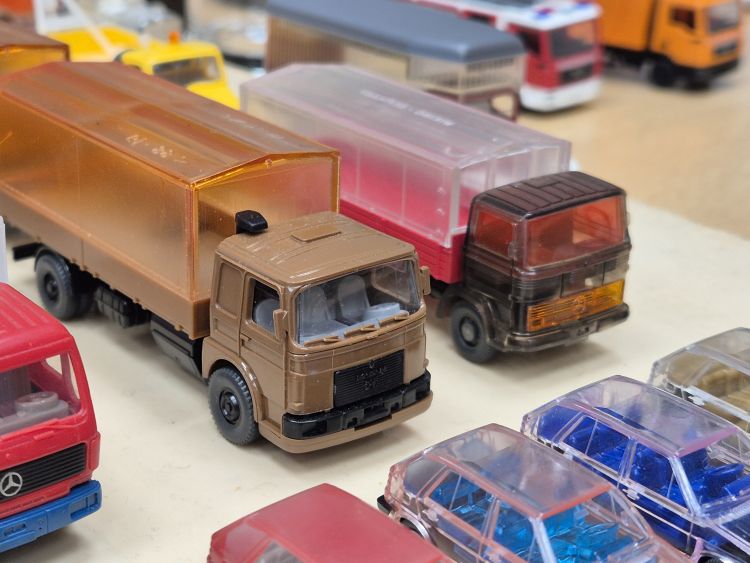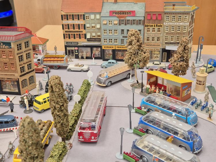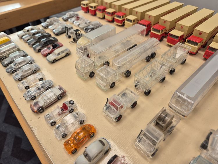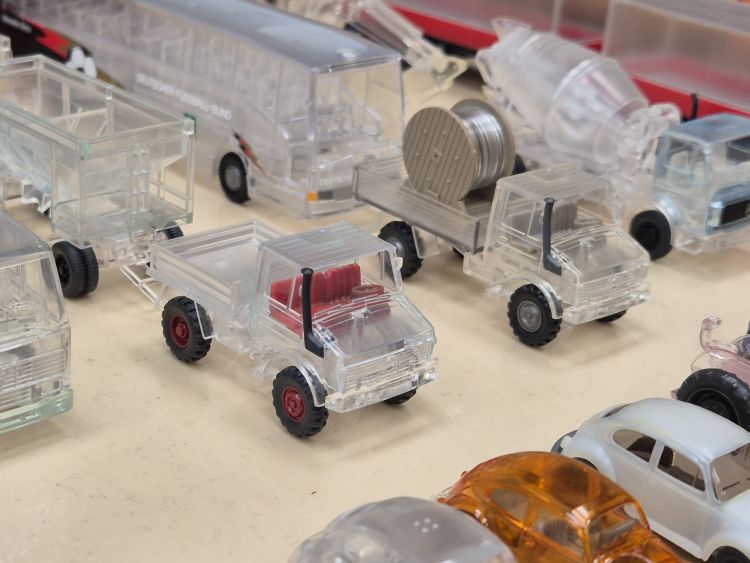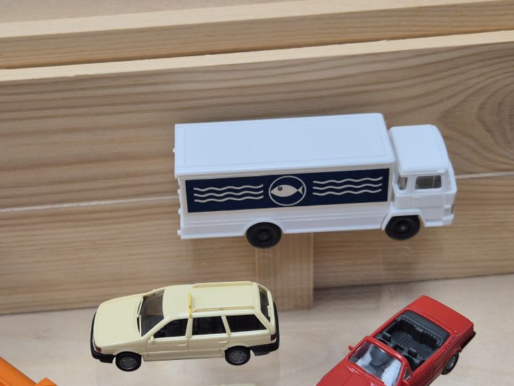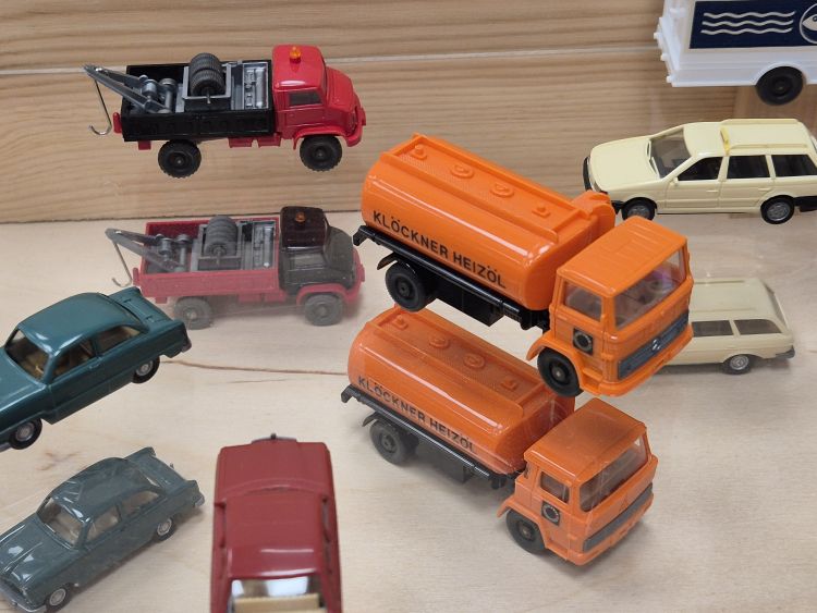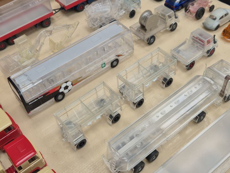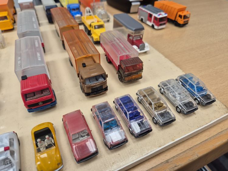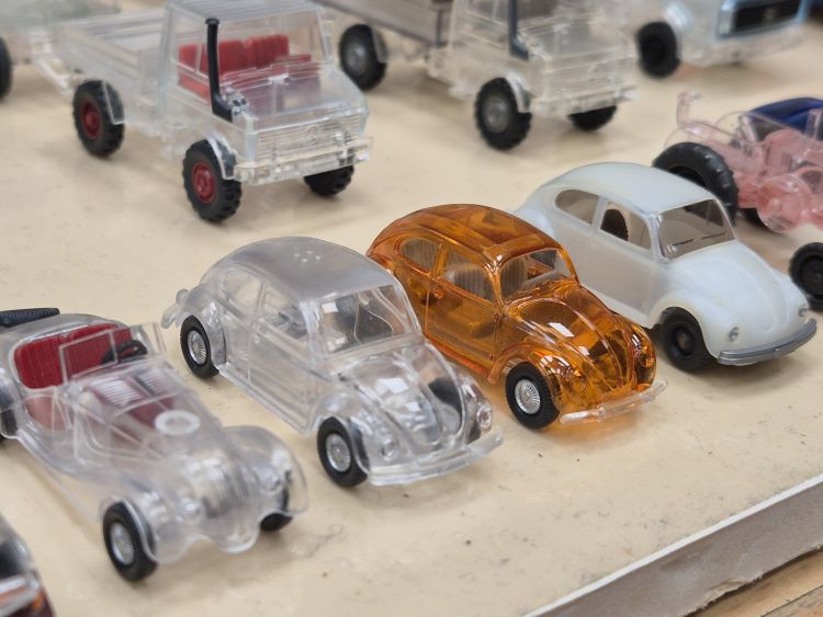 Im Raum sausten auf Tastendruck umgebaute WIKING-Autos über einem Straßenschleife. Die 31 Teilnehmenden verwandelten den Ausstellungsraum mit ihren Modellpräsentationen auf ganz unterschiedliche Art und Weise in eine kleine Museumslandschaft. Zu sehen gab es wieder Modelle aus allen Sammelthemen: Flugzeuge, Schiffe, Draht- und Rollachser, verglastes und unverglastes Material, Umbauten, Fotografiermodelle, Vorserien, Werbe- und einfach nur schöne Serienmodelle. Die ganze WIKING-Vielfalt in einem Raum.