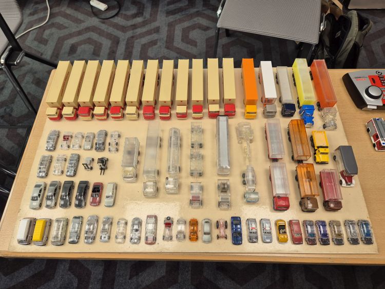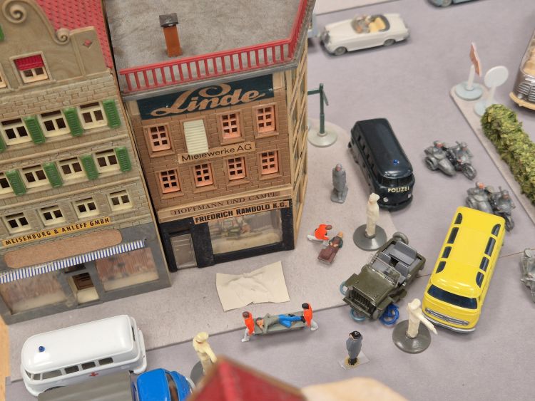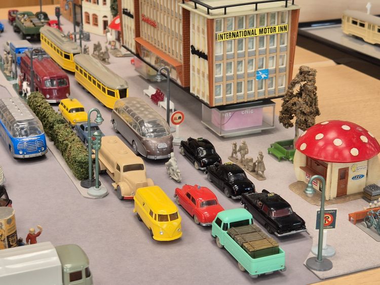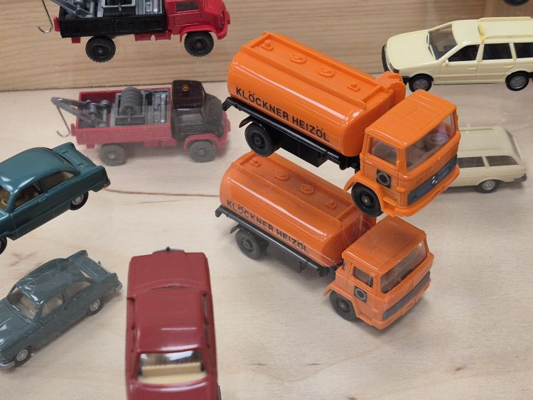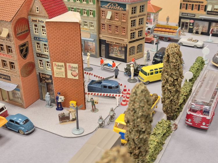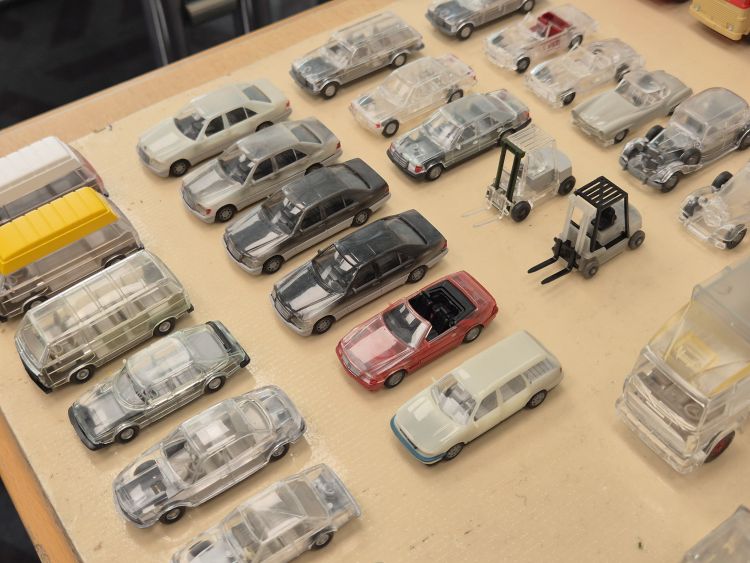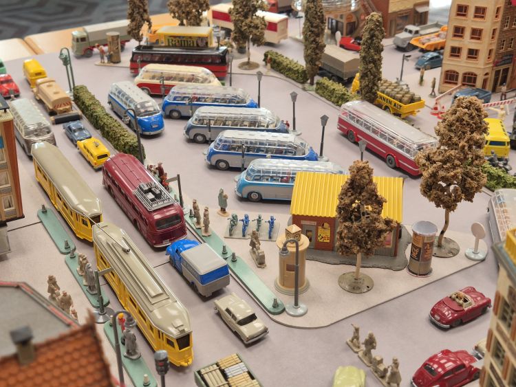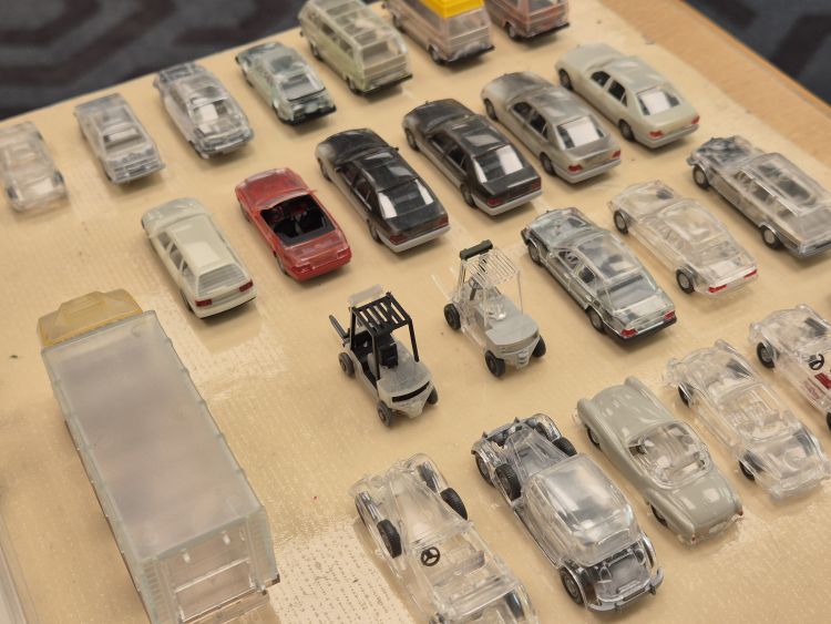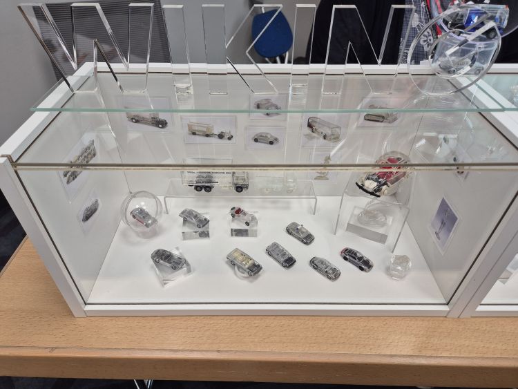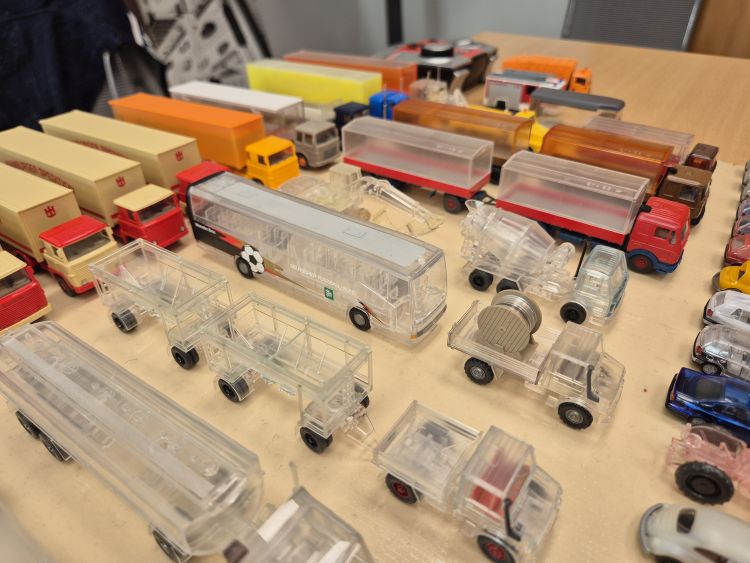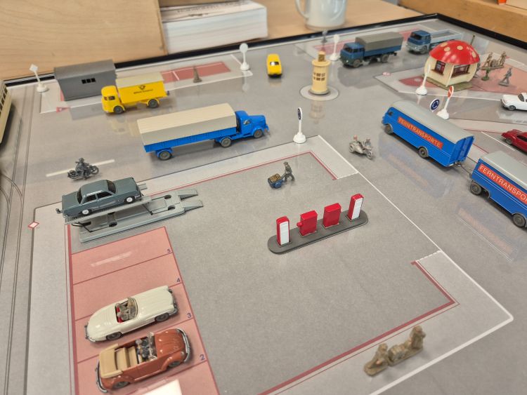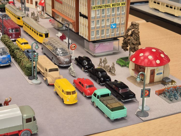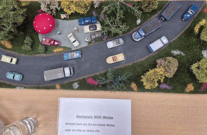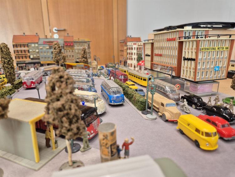 Im Raum sausten auf Tastendruck umgebaute WIKING-Autos über einem Straßenschleife. Die 31 Teilnehmenden verwandelten den Ausstellungsraum mit ihren Modellpräsentationen auf ganz unterschiedliche Art und Weise in eine kleine Museumslandschaft. Zu sehen gab es wieder Modelle aus allen Sammelthemen: Flugzeuge, Schiffe, Draht- und Rollachser, verglastes und unverglastes Material, Umbauten, Fotografiermodelle, Vorserien, Werbe- und einfach nur schöne Serienmodelle. Die ganze WIKING-Vielfalt in einem Raum.