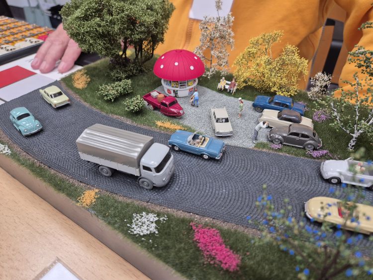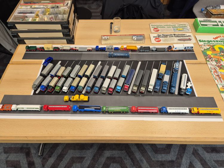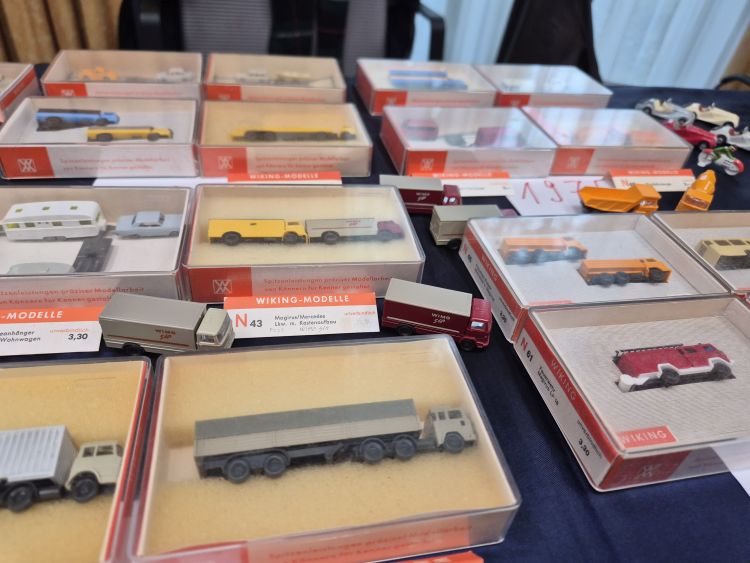 Nach vier Jahren in Nottuln hatte man sich im vergangenen Jahr darauf verständigt ein neues Konzept und einen neuen Standort für das Treffen auszuprobieren. Zentral und autobahnnah gelegen fiel die Wahl auf ein Hotel in Kamen bei Unna. Dort stand ein großer, gut ausgeleuchteter Raum für die Modellpräsentationen zur Verfügung. Was am Anfang so großzügig wirkte, war am Mittag voll gefüllt. Denn es waren 31 Sammlerinnen und Sammler nach Kamen gekommen, um sich gegenseitig ihre WIKING-Lieblinge und Zubehör zu präsentieren, und sich über die Leidenschaft WIKING-Modelle auszutauschen. Mit dabei viele neue Gesichter, die das erste Mal beim WtW dabei waren. Und viele bekannte Gesichter, die endlich mal wieder dabei sein wollten und/oder konnten. Das passte perfekt zusammen, und führte zu noch mehr Austausch und Interaktionen als in den letzten Jahren.