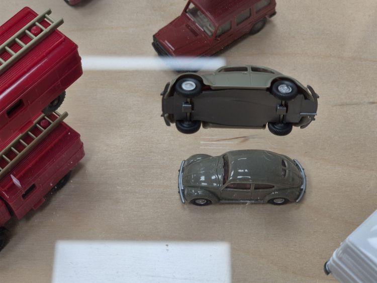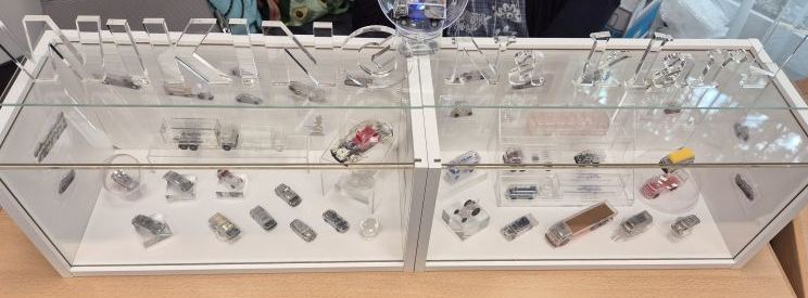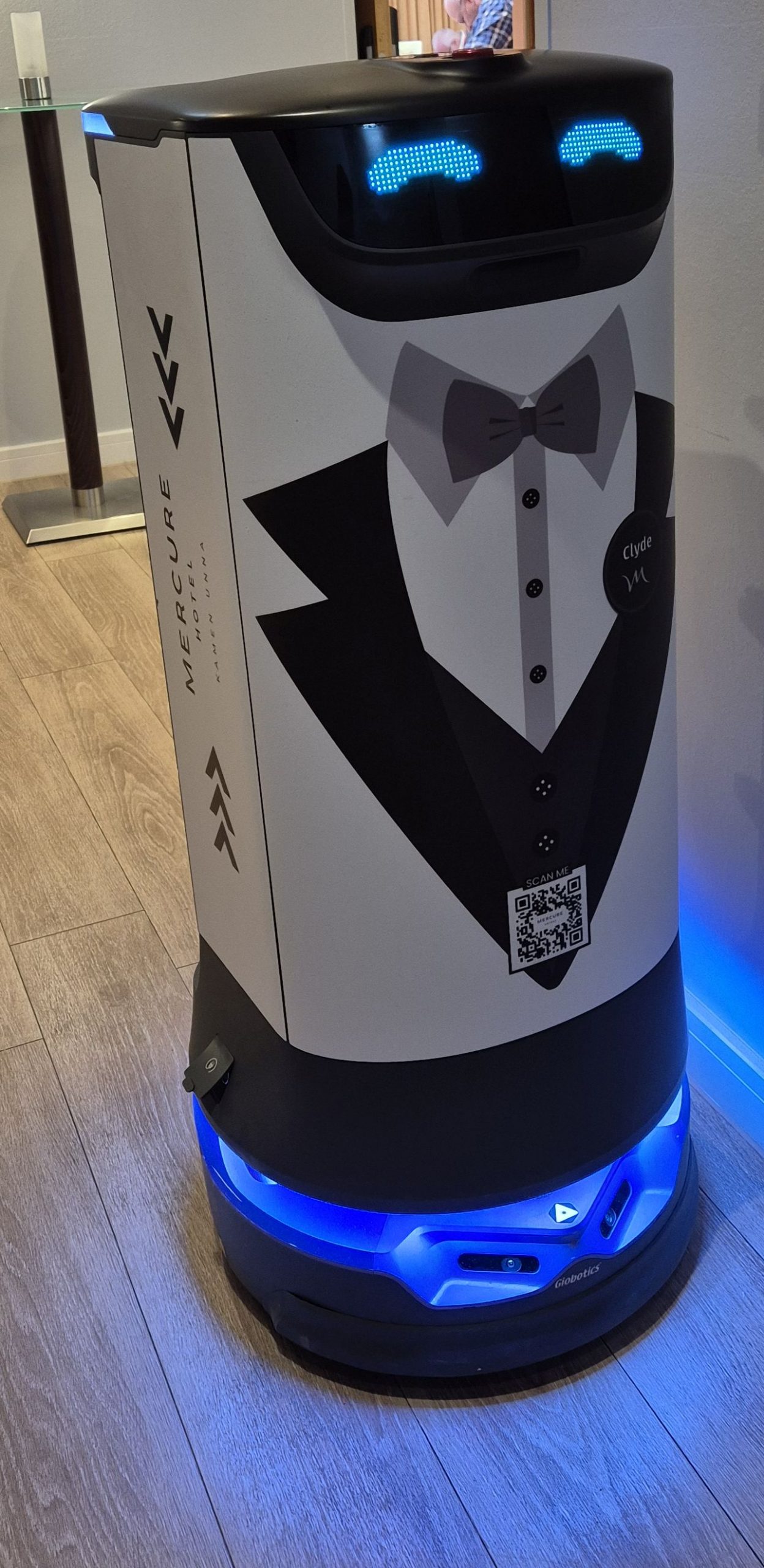 Sogar John und Clyde schienen zu staunen. Die stummen Diener durften zwar nicht in den Ausstellungsraum, warteten aber brav vor der Tür auf das genutzte Geschirr vom Mittagssnack und die Kaffeetassen. Die wurden dann autonom auf Tastendruck in die Spülküche gefahren. Digitaler Ausweg aus dem Fachkräftemangel. Hätte Clyde auch noch auf dem Weg staubgesaugt und gewischt, hätte er mit nach Hause kommen müssen. Ich denke, nicht nur beim Verfasser dieser Zeilen.