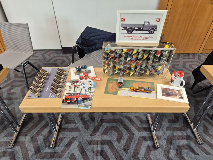 Eines der Sondermodelle wurde auf den Spendentisch zu den reichhaltig gespendeten Modellen, Bücher, Tassen und Werbeartikeln gelegt. Diese wurden dann nach dem reichhaltigen und guten Abendessen in einer locker lustigen Atmosphäre höchstbietend für einen guten Zweck versteigert. Am Ende konnten 1.300 Euro an ein Kinderheim in der Nähe des ersten WIKING-Firmenstammsitzes Unter den Eichen 101 in Berlin überwiesen werden! Damit kann das Betreuerteam z. B. Weihnachten einige Kinderaugen zum Leuchten bringen. Oder auch mal einen Ausflug machen, der sonst nicht finanzierbar wäre.