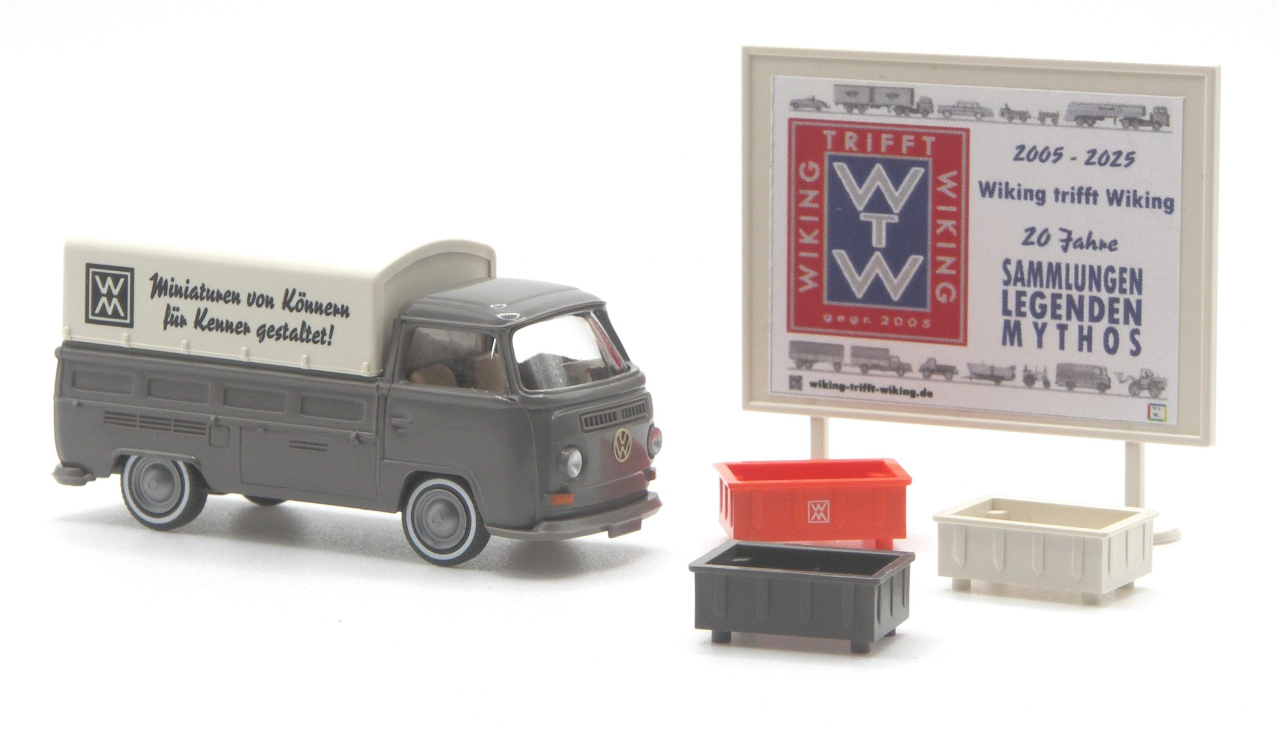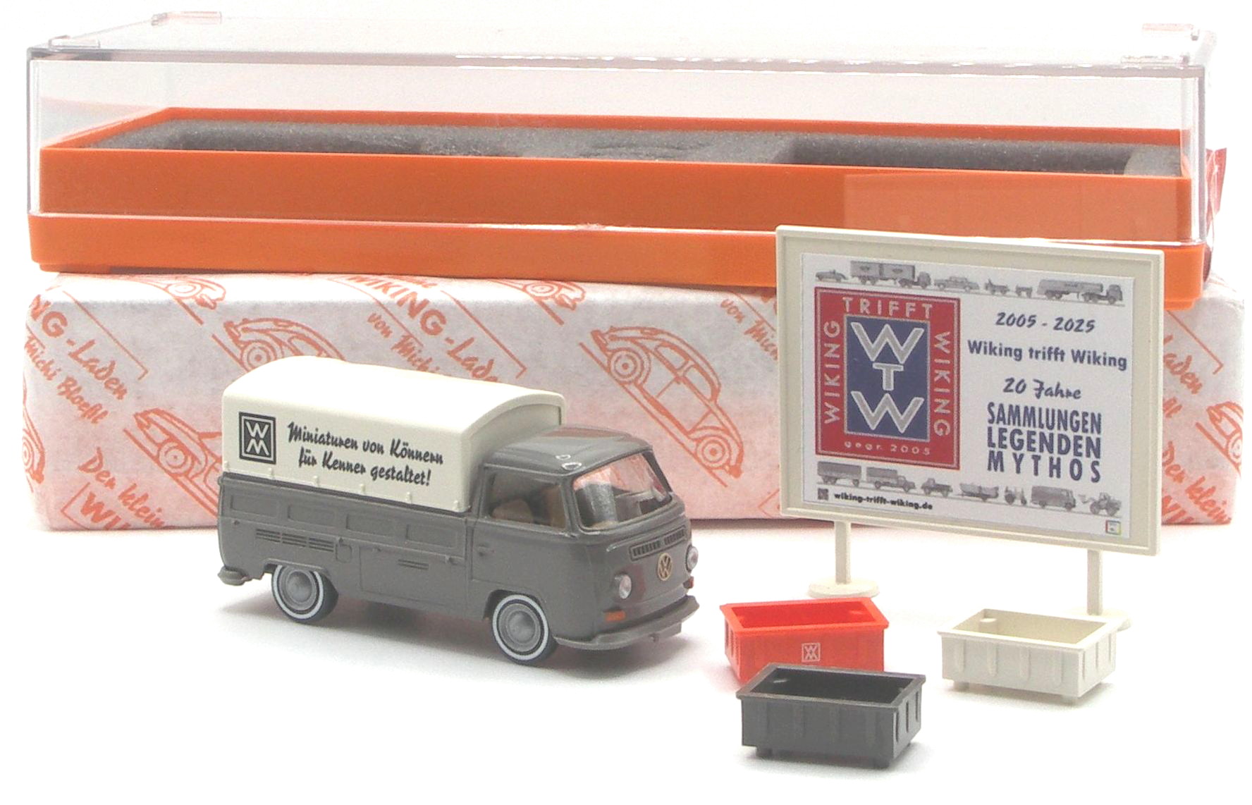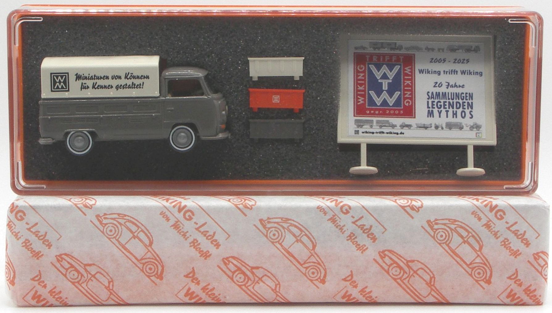Zum Jubiläum haben sich zwei teilnehmende Sammler etwas besonderes einfallen lassen. Die Idee unterstützte Michi Bloeßl mit Restbeständen von seinen Der kleine WIKING-Laden Sondermodellen. Diese wurden in der kleinen Geschenkbox zum Selbstkostenpreis den Teilnehmern vor Ort angeboten. Die Plakatwand in Sonderfarbe wurde vom Sammler Martin G. mit einem Erinnerungsplakat versehen, die Box mit Siegelaufklebern versehen, und dann kratzsicher in Wickelpapier eingepackt. An dieser Stelle herzlichen Dank an Martin, Olaf und Michi für die Idee und die Möglichmachung dieses tollen Erinnerungsmodells.